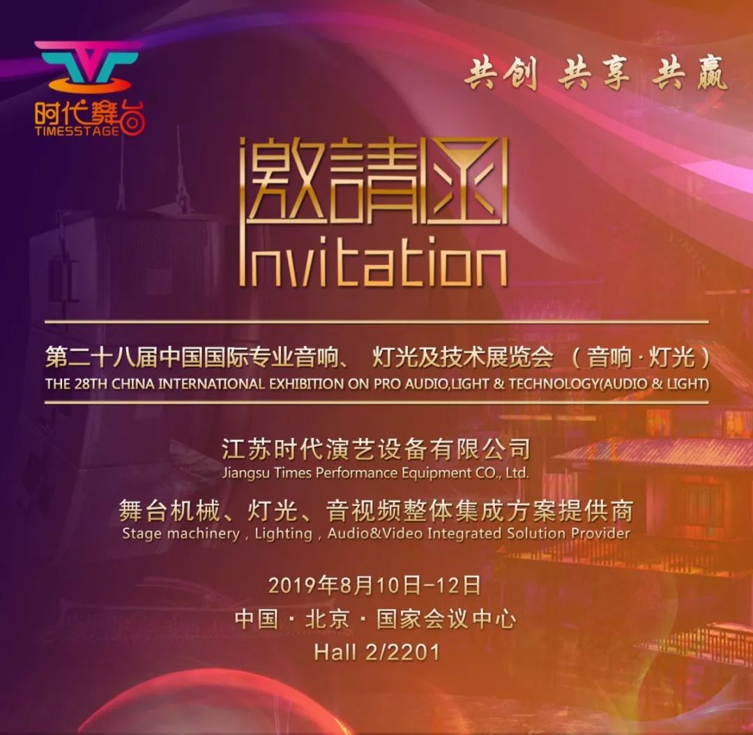 展會期間,舞臺機械高峰論壇將于第一天8月10日上午9:30在國家會議中心4號館內會議區同期舉行。9:30時,江蘇時代舞臺總經理于鋒,將作為第一位演講嘉賓,就《德國意大利劇場舞臺技術考察與思考》、《劇院建設中舞臺工藝的實際應用》兩個主題作專題演講和分享,邀請您屆時蒞臨論壇現場,共同參與溝通討論。 2019 PALM 江蘇時代舞臺展位效果圖本次展會江蘇時代舞臺將攜新型卷揚機、新型舞臺機械控制臺等展品亮相展示。江蘇時代演藝設備有限公司(以下簡稱“江蘇時代”)總部基地位于梅蘭芳故鄉——江蘇泰州,擁有30多年舞臺設備設計和制造歷史,配置有4萬...